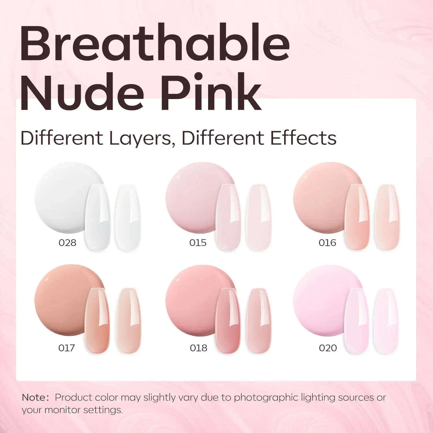 - 6 soft nude/pink tones for an elegant look