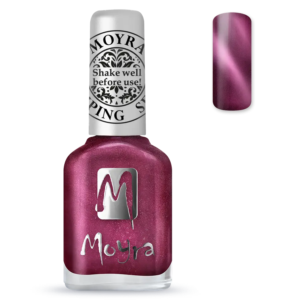 The Moyra Stamping Nail Polish Cat Eye SP32 Magnetic Red is a must-have for anyone who loves unique nail art! This highly pigmented and fast-drying stamping polish is specially designed for stamping nail art and creates a stunning cat-eye effect with the help of a magnet. The gorgeous shade with magnetic particles provides a deep, mysterious shine and a spectacular 3D effect on your nails.