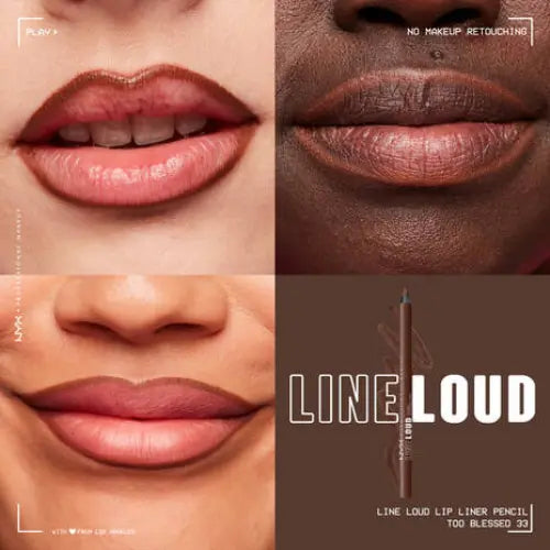 The NYX Professional Makeup Line Loud Lip Liner Too Blessed is an intensely pigmented longwear lip liner. This matte liner glides over your lips like butter due to the smooth, soft creamy formula that is enriched with jojoba oil and vitamin E. These ingredients also ensure that your lips remain smooth and supple and do not dry out! The pay-off is maximum, so you can create a perfect line around the contours of your lips with one movement. Accentuate your lips with your favorite color to complete your look.