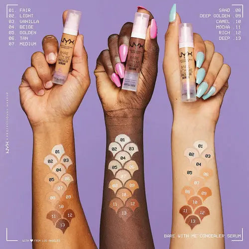 The NYX Professional Makeup Bare With Me Concealer Serum is the latest edition to the Bare With Me family. This concealer is perfect for masking blemishes and dry spots on your skin. This concealer covers acne, red spots and dark circles without making your makeup look cakey!