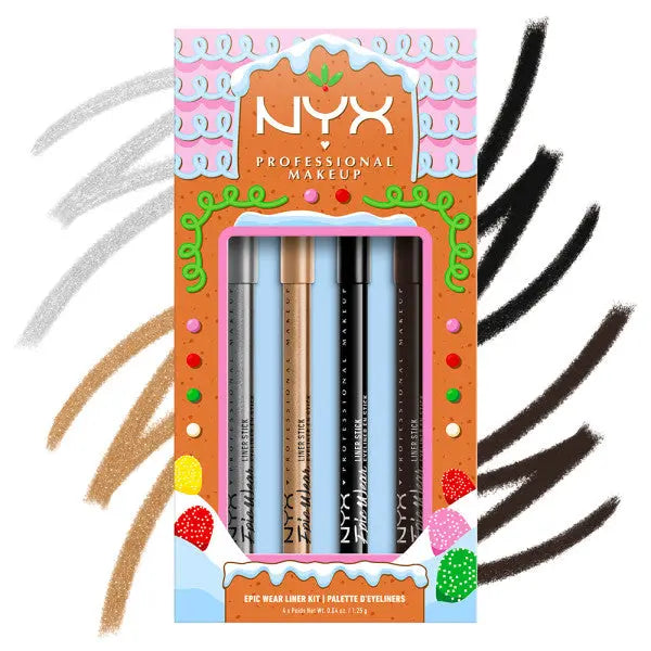 The NYX Professional Makeup Holiday Epic Wear Liner Stick Set is your ultimate eyeliner upgrade for the festive season! This limited-edition set includes four high-performance Epic Wear Eyeliner Sticks three metallic shades and one matte to effortlessly take your eye looks from subtle to spectacular.