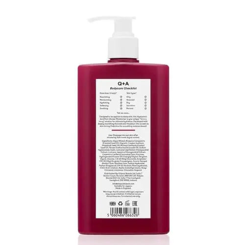 Moreover, this moisturizer has a wonderful scent, a fruity and fresh mix of fresh apple and avocado, with subtle notes of mimosa, magnolia and olive. So, whether you're in a hurry or just looking for a quick and effective way to hydrate your skin, the Q+A Hyaluronic Acid Wet Skin Moisturizer is your new best friend.