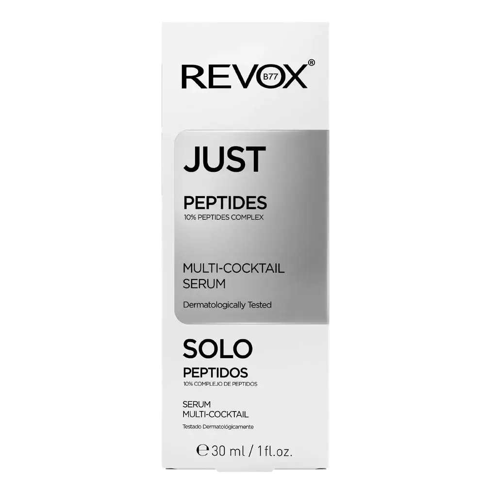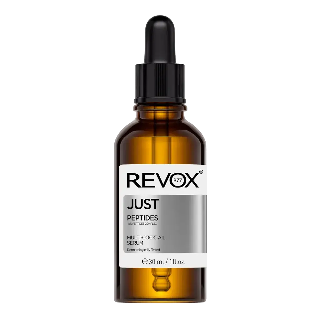The Revox Just Peptides 10% is a powerful multi-cocktail serum for face and neck, specially designed to target signs of ageing. Peptides, the building blocks of proteins, stimulate the production of collagen and elastin, helping to reduce wrinkles and improve skin firmness and elasticity.
