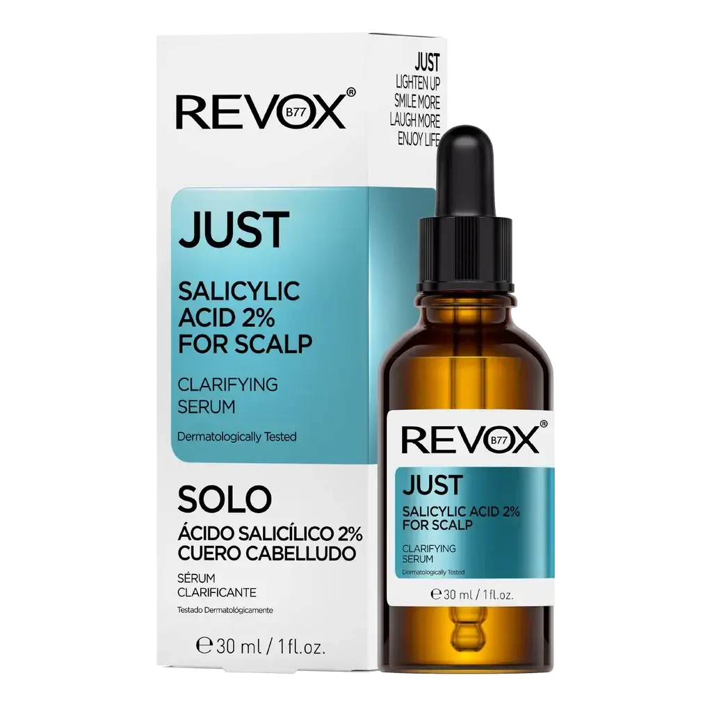 The Revox Just Salicylic Acid For Hair is the serum for a fresh, clean scalp! With 2% salicylic acid (BHA), this serum helps to effectively remove dead skin cells and excess sebum, ideal for those who suffer from an oily and acne-prone scalp.