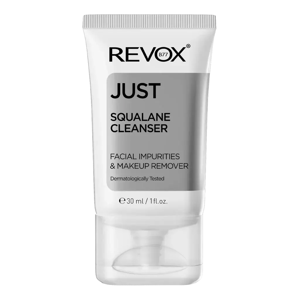 The Revox Just Squalane Cleanser is a gentle cleanser that removes impurities and makeup in an instant. With a unique melting formula based on squalane, this cleanser provides a gentle yet effective cleansing. It dissolves dirt, excess oil and makeup residue without drying out the skin, and even removes SPF residue.