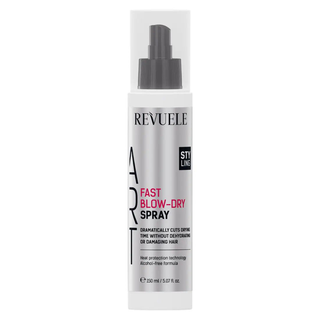 Revuele Fast Blow-Dry Spray is your new secret weapon for perfectly styled hair in no time! This handy spray not only speeds up your blow-dry routine, but also protects your locks from heat and keeps them healthy and hydrated.