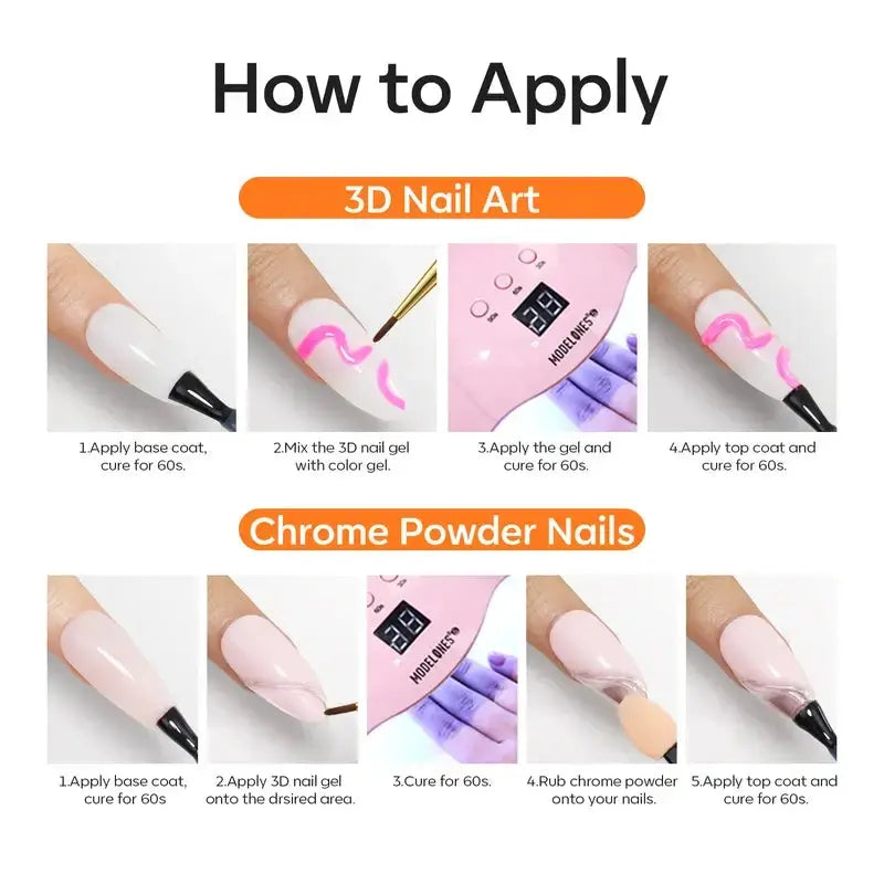 The formula is lightweight but super strong and stays beautiful for a long time. The gel builds quickly under both LED and UV lamps, allowing you to create a clean and impressive 3D look in no time. Suitable for both beginners and professional nail artists.