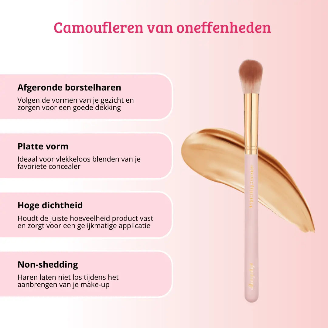 The Boozyshop Soft Pink & Gold Brightening Concealer Brush is a makeup brush for applying concealer. This flat brush is perfect for applying products with a cream texture. The rounded shape is ideal for accurately concealing red spots, blemishes and dark circles.