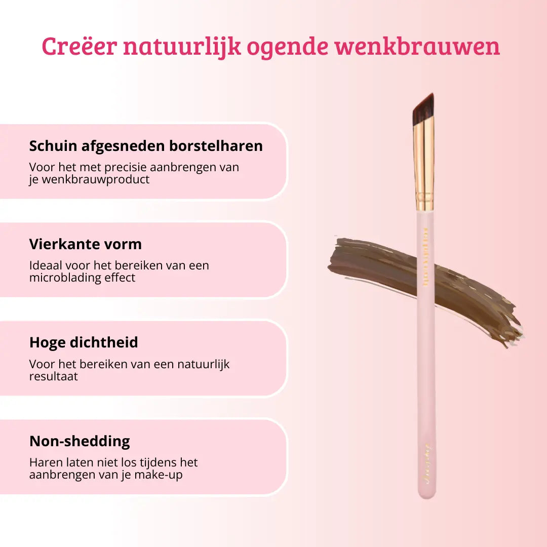 The Boozyshop Soft Pink & Gold Square Angled Brow Brush is a makeup brush for creating natural-looking eyebrows. With the 4D diagonally cut bristles you can effortlessly achieve a microblading effect and apply your favorite eyebrow product with precision. The fine soft bristles create feather-light lines that are barely distinguishable from real hairs. Furthermore, this eyebrow brush guarantees maximum comfort and control, allowing you to easily outline and fill in your eyebrows. With this versatile tool you can easily create beautifully shaped eyebrows.