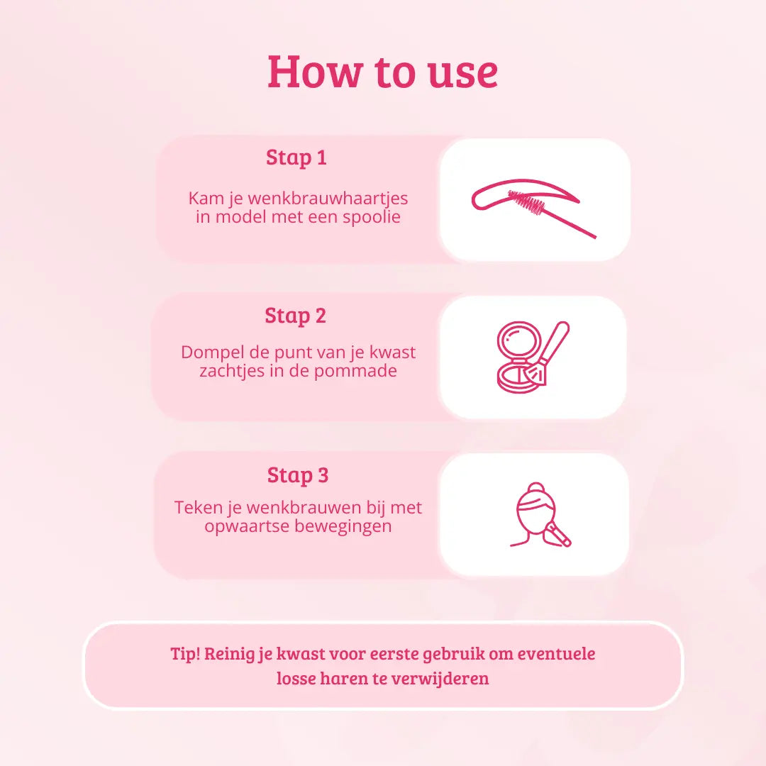 This brush is not only your secret weapon for perfectly defined eyebrows, but it also looks great on your makeup table. The silky soft synthetic bristles are easy to clean and ensure a smooth application. They easily absorb and retain the product so that the right amount of product is applied for even distribution. In short, perfect for applying both powder and pomade.