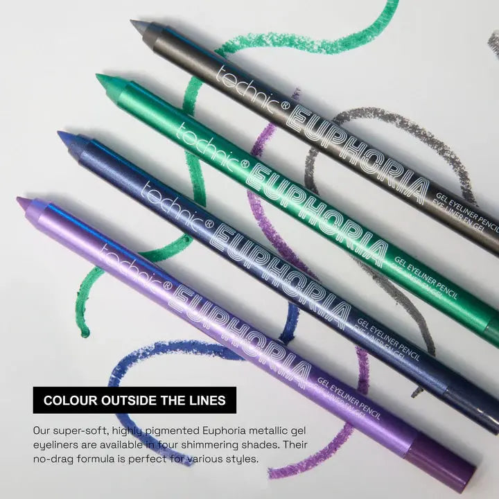 The Technic Euphoria Gel Eyeliner Pencil Purple is your go-to eyeliner for a bold, metallic look! This super-soft, creamy gel eyeliner features a highly pigmented purple shimmer shade that glides effortlessly over your skin. Whether you want to create a sharp wing or smudge a smoky, soft-glam look, this eyeliner lets you do it all.