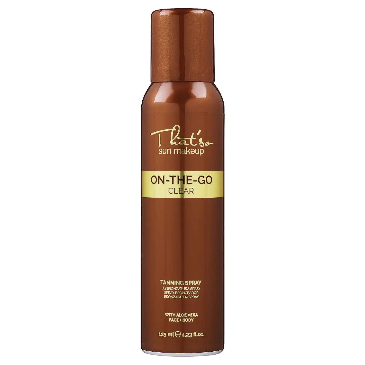 The That's So On The Go Clear is the hydrating tanning spray for face and body if you are going for a natural, even complexion without hassle. The transparent formula is applied directly with the convenient continuous spray applicator, without the need to rub in. No streaks, no stains, just a beautiful golden brown glow.