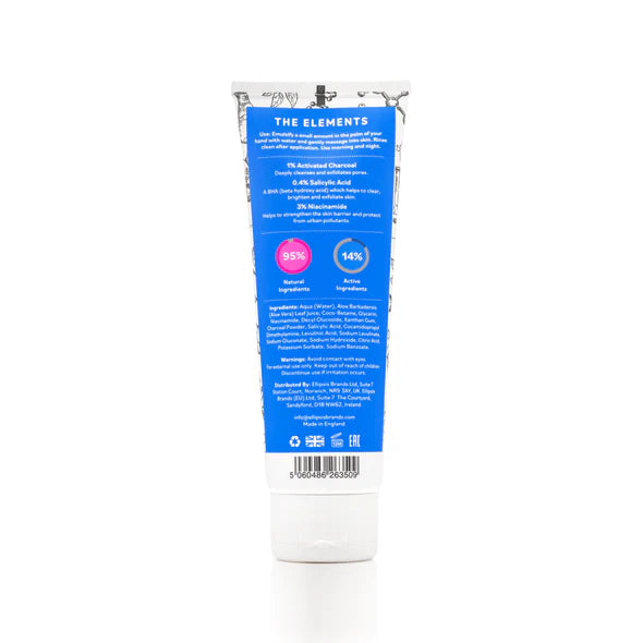 Aqua (Water), Aloe Barbadensis (Aloe Vera) Leaf Juice, Coco-betaine, Glycerin, Niacinamide, Decyl Glucoside, Xanthan Gum, Charcoal Powder, Salicylic Acid, Cocamidopropyl Dimethylamine, Levulinic Acid, Sodium Levulinate, Sodium Gluconate, Sodium Hydroxide, Citric Acid, Potassium Sorbate, Sodium Benzoate.