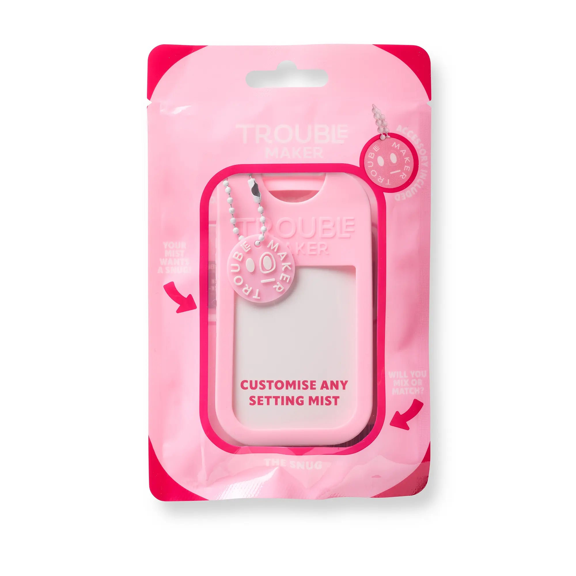 The Trouble Maker Mist Snug Accessory Twinkle Pink is the perfect accessory to give your mist a fun and personal twist. This colorful and flexible cover fits perfectly around your Trouble Maker mist and makes it super easy to carry in your bag or on your keychain.