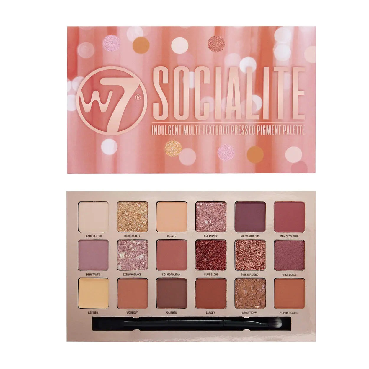 W7 Cosmetics Socialite Eyeshadow Palette is a breathtakingly beautiful eye shadow palette with 18 unprecedented beautiful shades of eye shadow! The temptation only gets bigger when you hear that this palette contains shades with matte, shimmer, glitter and duo-chrome finish! With the versatility of this palette you create beautiful looks, suitable for every occasion!