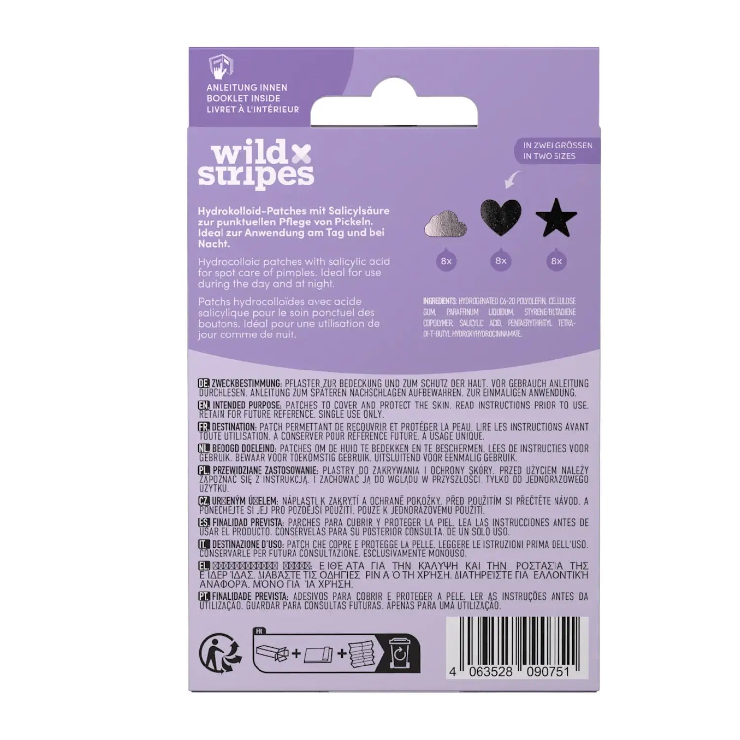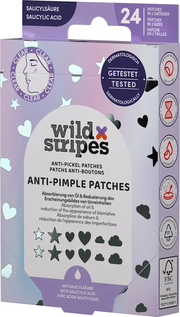 The patches are made from hydrocolloid material and enriched with salicylic acid for effective, localized pimple treatment. Thanks to their water-resistant and dirt-repellent design, they protect the skin from external influences and are perfect for both daytime and nighttime use. Easy to apply, comfortable to wear and simple to remove—exactly what you need for fast spot care.